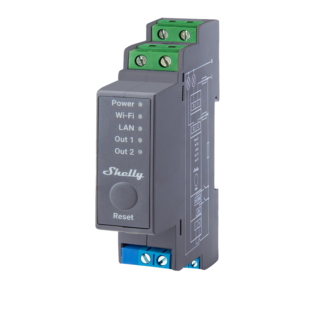 Shelly Pro 2 - Interrupteur intelligent sur rail DIN - Wi-Fi 2,4 GHz IEEE 802.11 b/g/n / Bluetooth - Compatible 110-240 V - Idéal pour la domotique - Compatible avec Alexa et Google Assistant